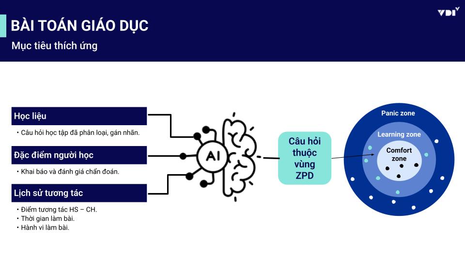 Từ các dữ liệu này, hệ thống tạo ra lộ trình học thích ứng, tự động điều chỉnh độ khó theo vùng phát triển gần (ZPD) của từng học sinh.