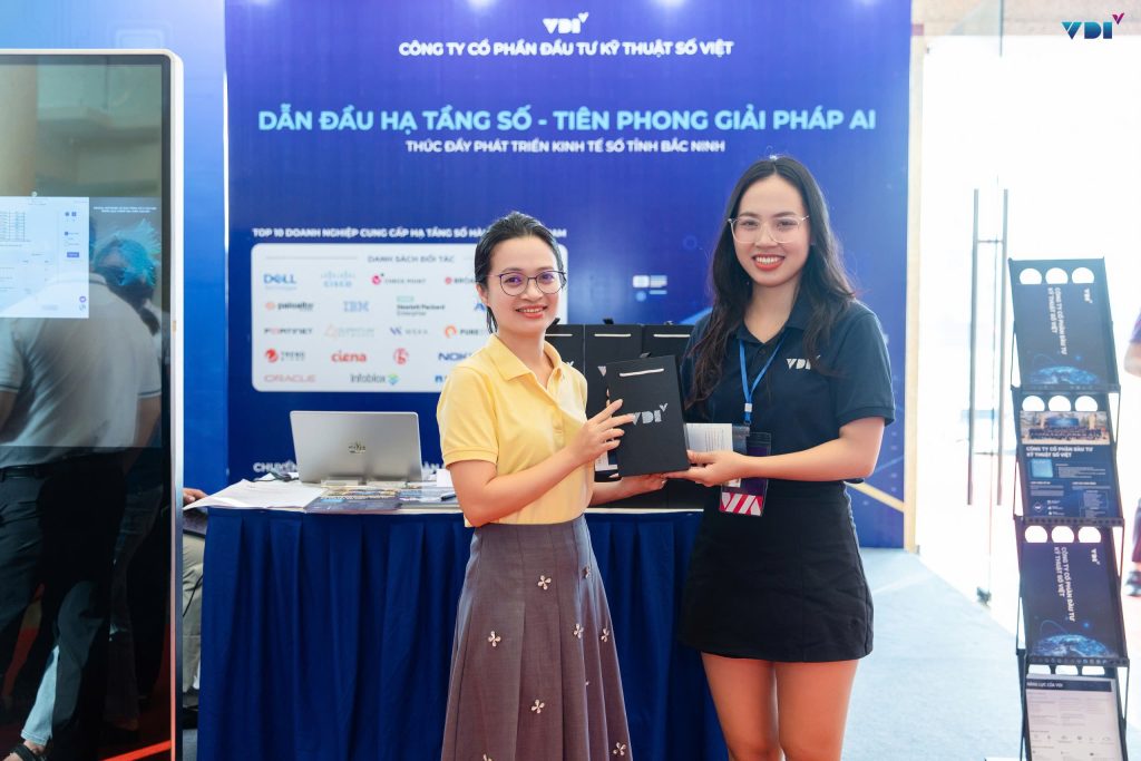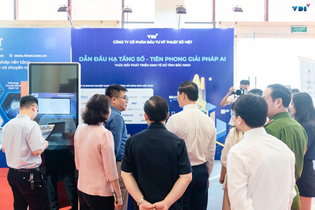 Gian hàng triển lãm của VDI tại sự kiện cũng ghi dấu ấn mạnh mẽ khi thu hút sự quan tâm của nhiều đại biểu và khách tham quan nhờ các giải pháp công nghệ tiên tiến, tính ứng dụng cao và phù hợp với định hướng chuyển đổi số của tỉnh. Các sản phẩm và mô hình mà VDI mang đến đều hướng đến mục tiêu hỗ trợ địa phương hiện đại hóa hạ tầng CNTT, tối ưu quản lý dữ liệu và thúc đẩy tăng trưởng kinh tế số.